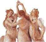 …In La Primavera, Botticelli, through the figures of Zephyr and Mercury, contrasts the `movements’ of the mind and body. Man is capable of the highest good but also the basest depravity. To explain why such conflict exists within the noblest of species, it was said that the soul is a temporary inhabitant of the body. Its sensual and material demands were what Ficino called `many mad masters’.