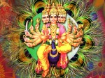 Hiranyakashipu’s own son, Prahlada, however, disagreed. He was and remained devoted to Vishnu.[18] This infuriated Hiranyakashipu. He subjected Prahlada to cruel punishments, none of which affected the boy or his resolve to do what he thought was right. Finally, Holika, Prahlada’s evil aunt, tricked him into sitting on a pyre with her.[5] Holika was wearing a cloak that made her immune to injury from fire, while Prahlada was not. As the fire roared, the cloak flew from Holika and encased Prahlada,[18] who survived while Holika burned. Vishnu, the god who appears as an avatar to restore Dharma in Hindu beliefs, took the form of Narasimha – half human and half lion, at dusk (when it was neither day nor night), took Hiranyakashyapu at a doorstep (which was neither indoors nor outdoors), placed him on his lap (which was neither land, water nor air), and then eviscerated and killed the king with his lion claws (which were neither a handheld weapon nor a launched weapon).[24]