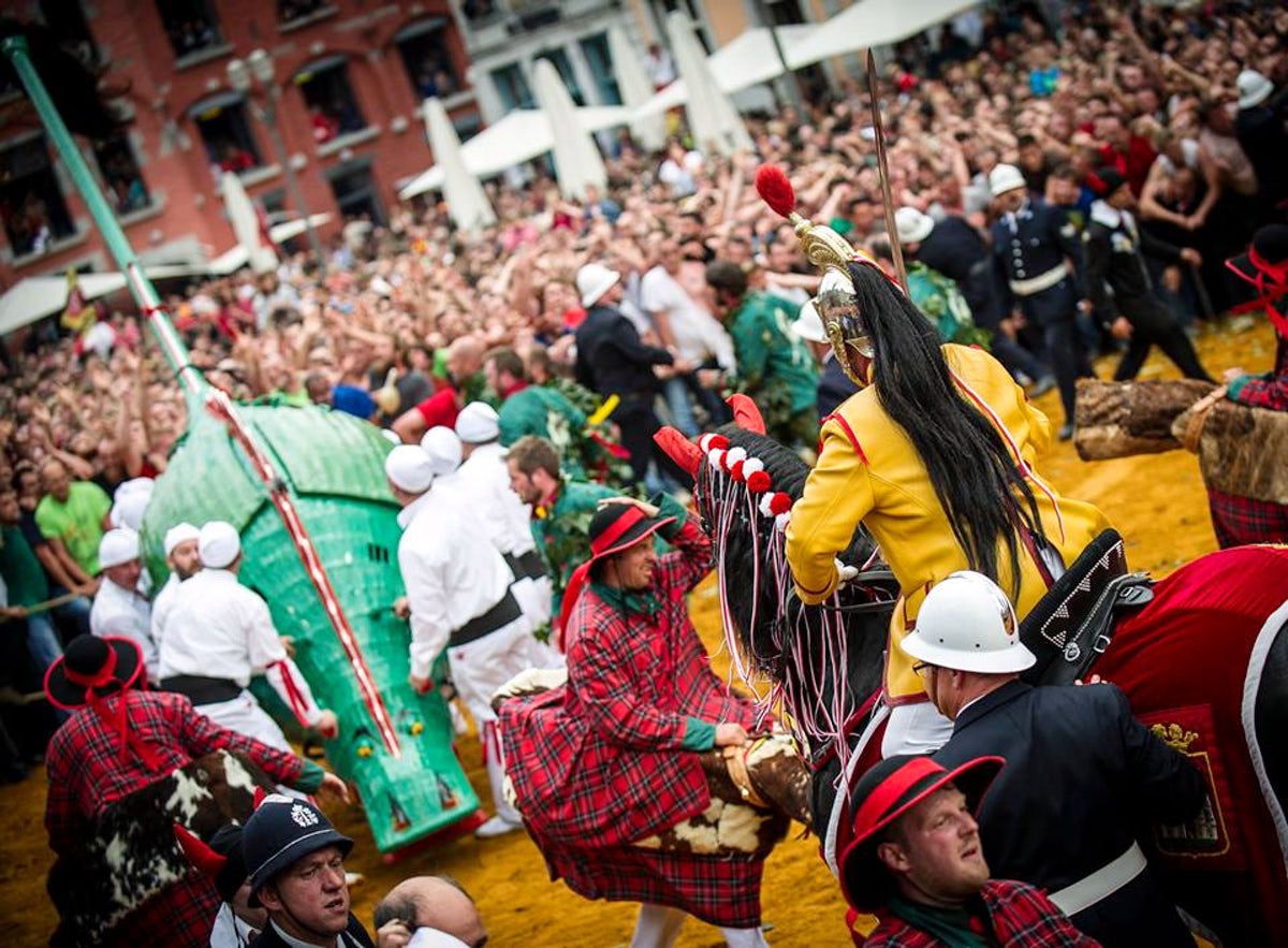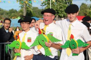 The legends is: “… the devil haunted the country. He changed into what he wanted in order to seduce a pretty princess, daughter of the master of the city. The Lord, fearing to see his child bewitched, ordered that the demon be hunt, promising to kill his treasure and the young person. It was a first Sunday of May: Satan had changed to “Papegay” (parrot). The people of the city, armed with tools and bows, were looking for him all over the countryside. With the grace of San Sebastián, patron of the archers, a young “pastorel” (shepherd) named Tantiro, who was in love with the Lord’s daughter, pierced the evil bird with an arrow, thus gaining the title of “Rei” of Rius and the heart of the “tender and white person”.