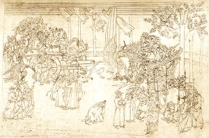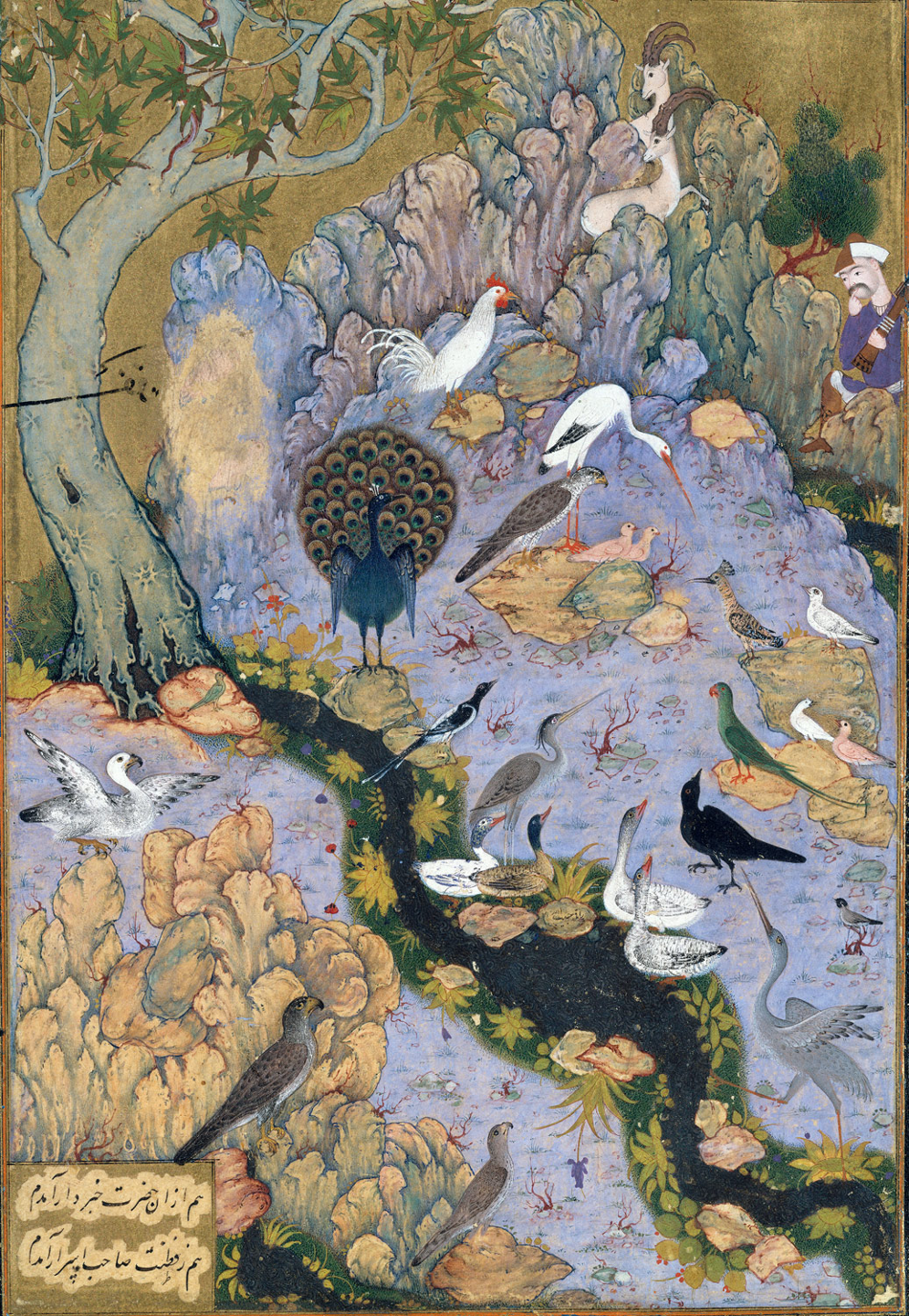 In the miniature, the Edenic meaning of spring is underlined by the presence of birds. These can be real (cranes, nightingales, geese, hoopoes, etc.) or mythical, such as Sîmorgh. In the Qur’an, the language of the birds is the initiatory wisdom granted by God to Solomon.( Coran XXVII, 16.)