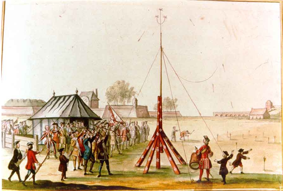 The first Sunday in May, when a figure of a popinjay, decked with parti-coloured feathers and suspended from a pole .