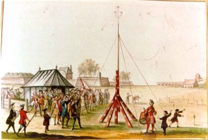 Since May 1 lies about halfway between the vernal equinox and the summer solstice, it was considered a good time to mark the transition into summer. Indeed, in most of medieval northern Europe (meaning the Celtic calendar), May 1 was the beginning of summer. By then the seeds for crops had just been sown (so farmers and their laborers could take a short break), and it was time to drive cattle and sheep out to their summer pastures. Both the sprouting crops and the soon-to-be pastured cattle needed divine protection from the dangers of the natural and supernatural worlds, which is why May Day developed as a holiday and took on the associated rituals and mythology that it did. And a goddess was a good figure to deal with such human concerns…..On May Day the May Queen and the Queen of Winter, together with their companies, would engage in a ritual contest, and the result was never in doubt. After the May Queen won, she would be crowned. Read more … Green Man, May Day and May Pole