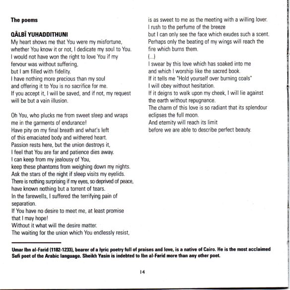 see: From Arab Poet to Muslim Saint – Ibn al-Farid, his verse and his shrine by Th. Emil Homerin